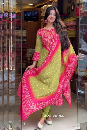 Bandhej Print Heavy Fancy Pair & Dupatta set