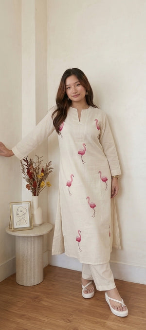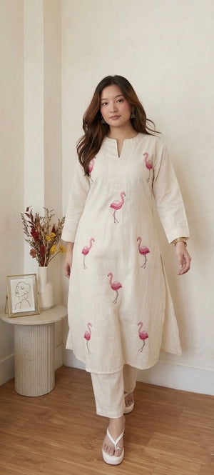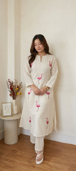 | Item :- | Flamingo Pure Khadi cotton Co-ords Set |