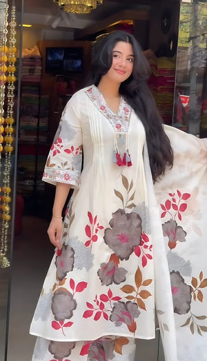 | Package Contain:- 3-Piece { Kurta - Pant - Dupatta } |