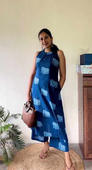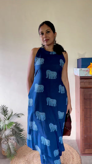 | Item :- | Indigo Motif Print A-Line Kurta Set for Women for Every Occasion |