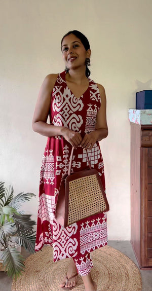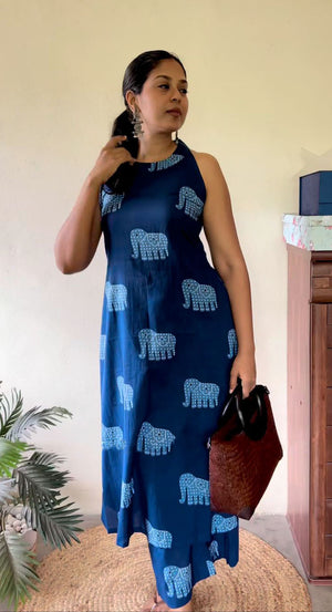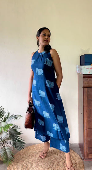 Indigo Motif Print A-Line Kurta Set for Women