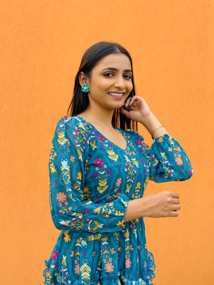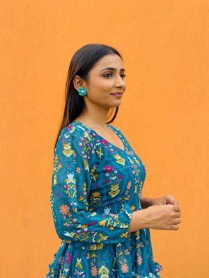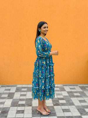 Kudbi Berry Blue Stylish 3-leyar Gown For Women.