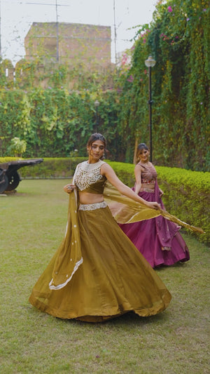Make a statement at every celebration with the Elvina Designer Lehenga Choli Set, crafted for elegance and festive grandeur. Designed in rich Chanda Silk, this ensemble features intricate sequins and thread embroidery, making it an ideal choice for weddings, festive occasions, receptions, and traditional celebrations.