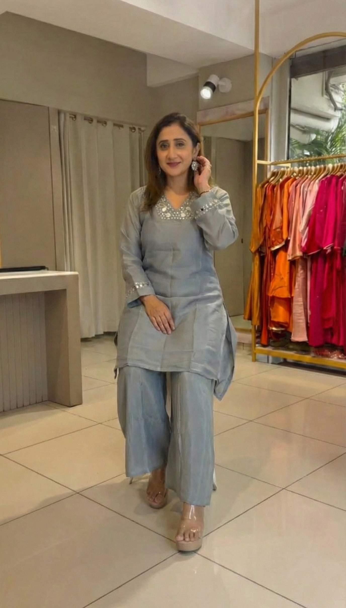 Nishi Shades Real mirror Stylish Co-ords set (Primium Quality) |